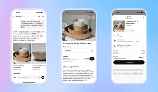 Представь: ты спрашиваешь “лучшие наушники до $50” или “подарки для геймера”. ChatGPT показывает варианты, и если товар поддерживает функцию, появляется кнопка “Купить”. Клик — и после подтверждения оплаты и адреса доставки заказ оформлен, без перехода на сайты.