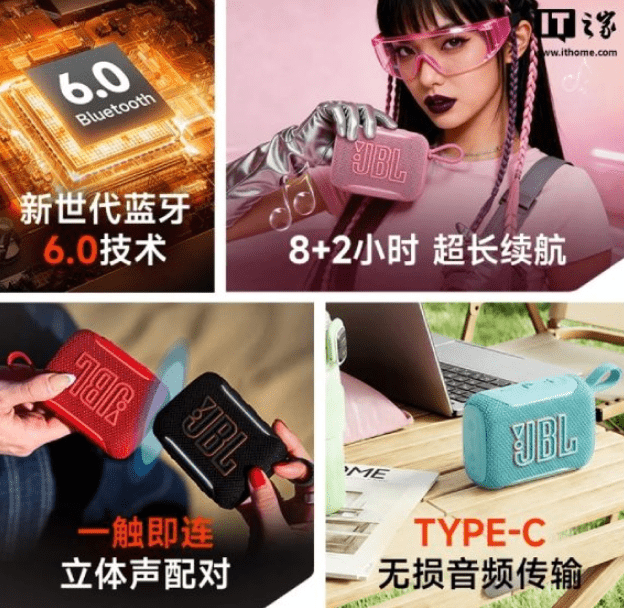JBL GO 5 получила свежий Bluetooth 6.0 с поддержкой кодеков SBC, AAC и LC3. Также заявлена поддержка Bluetooth AURACAST — для трансляции звука на несколько совместимых колонок. Приятные мелочи: