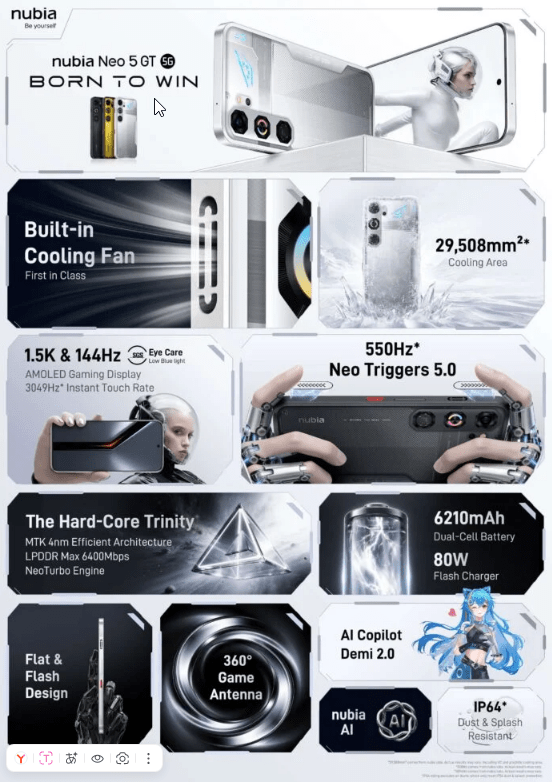 Nubia Neo 5 GT выйдет на глобальный рынок, начиная с Юго-Восточной Азии, уже в марте. Стартовая цена — €399. Для смартфона с активным охлаждением, 144 Гц экраном и большой батареей — очень конкурентно.