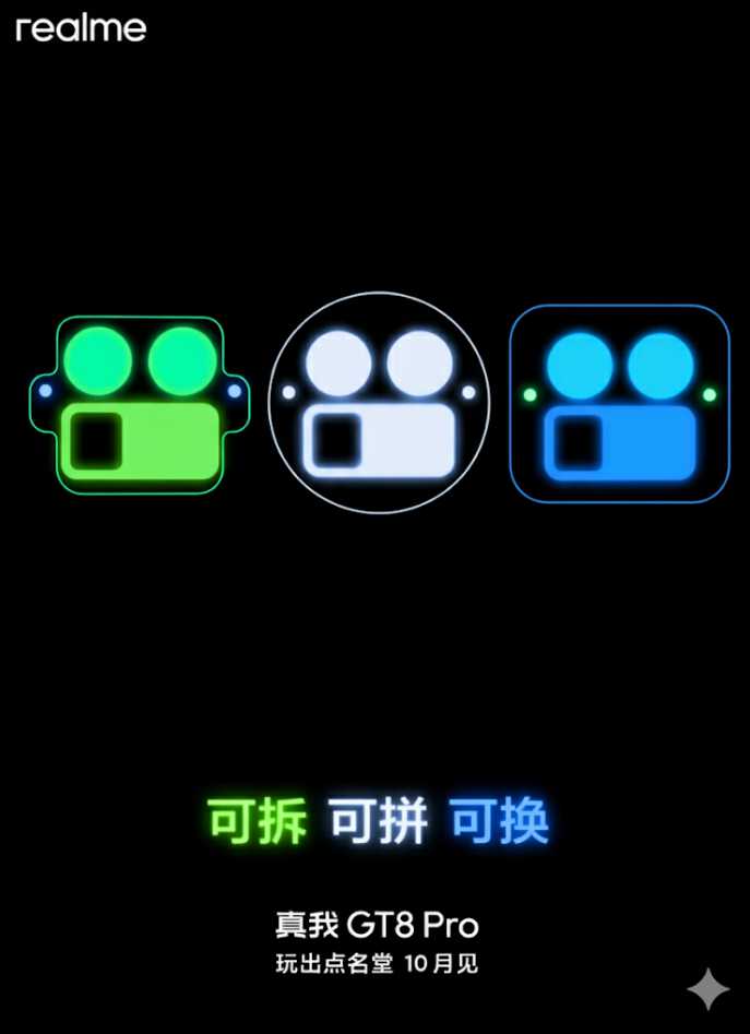 По тизеру, GT 8 Pro оснастят съёмным модулем камеры — меняй или переставляй по желанию. Видео показывает три варианта: круглый, квадратный и “роботизированный” нестандартный. Это шаг за пределы обычных круглых или квадратных вырезов, добавляя персонализации — твой смартфон, твой стиль.